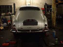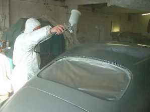 | Spraying in progress, using metallic silver, not dissimilar to the Dove Grey... | ...which was colour the car was wearing for its appearance the 1951 Paris Salon. | All these pictures were taken during the latter half of January 2003. |